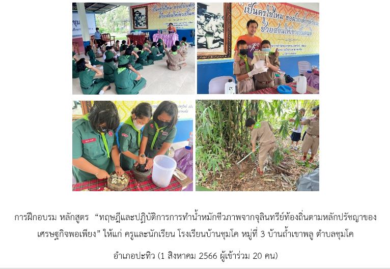พร้อมๆ กับการเรียนรู้ โดยมีหลักปรัชญาของเศรษกิจพอเพียงเป็นแกน ซึ่งผู้ที่ลงมือปฏิบัติทุกคนสามารถอธิบายได้