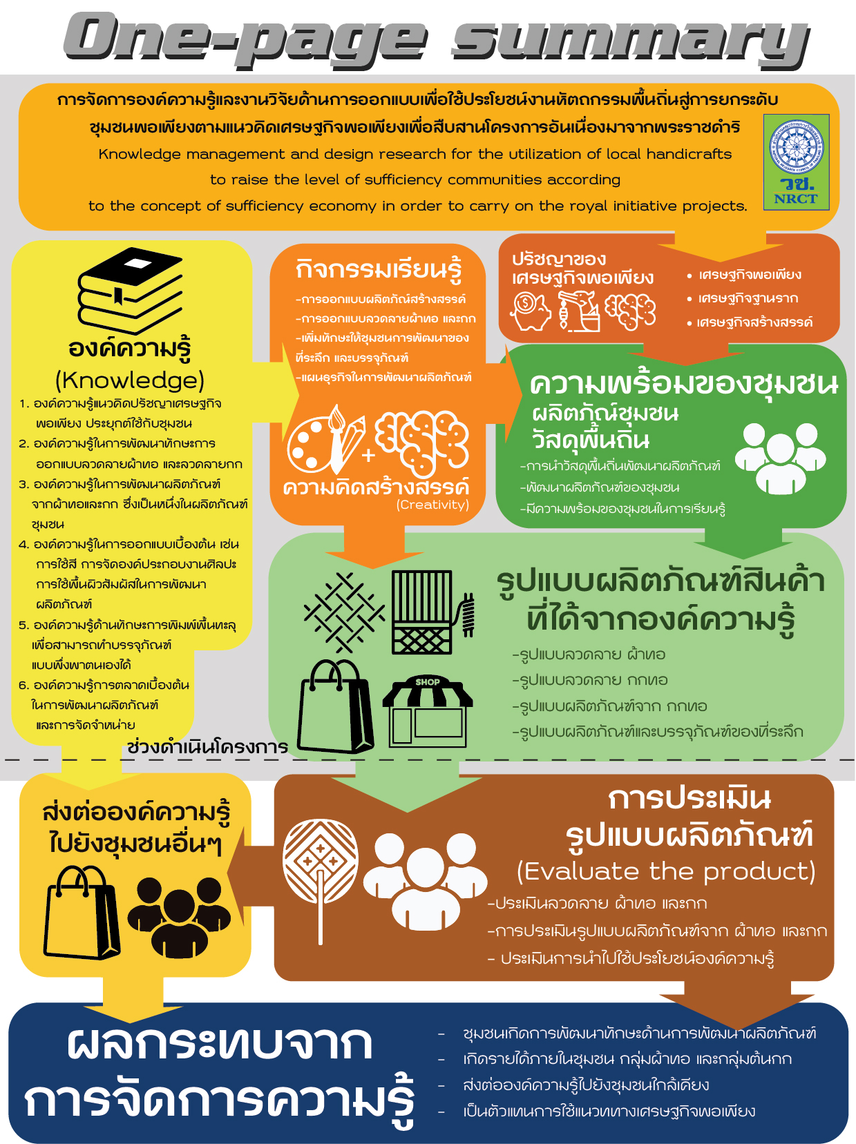 การจัดการองค์ความรู้และงานวิจัยด้านการออกแบบเพื่อใช้ประโยชน์งานหัตถกรรมพื้นถิ่นสู่การยกระดับชุมชนพอเพียงตามแนวคิดเศรษฐกิจพอเพียงเพื่อสืบสานโครงการอันเนื่องมาจากพระราชดำริ
