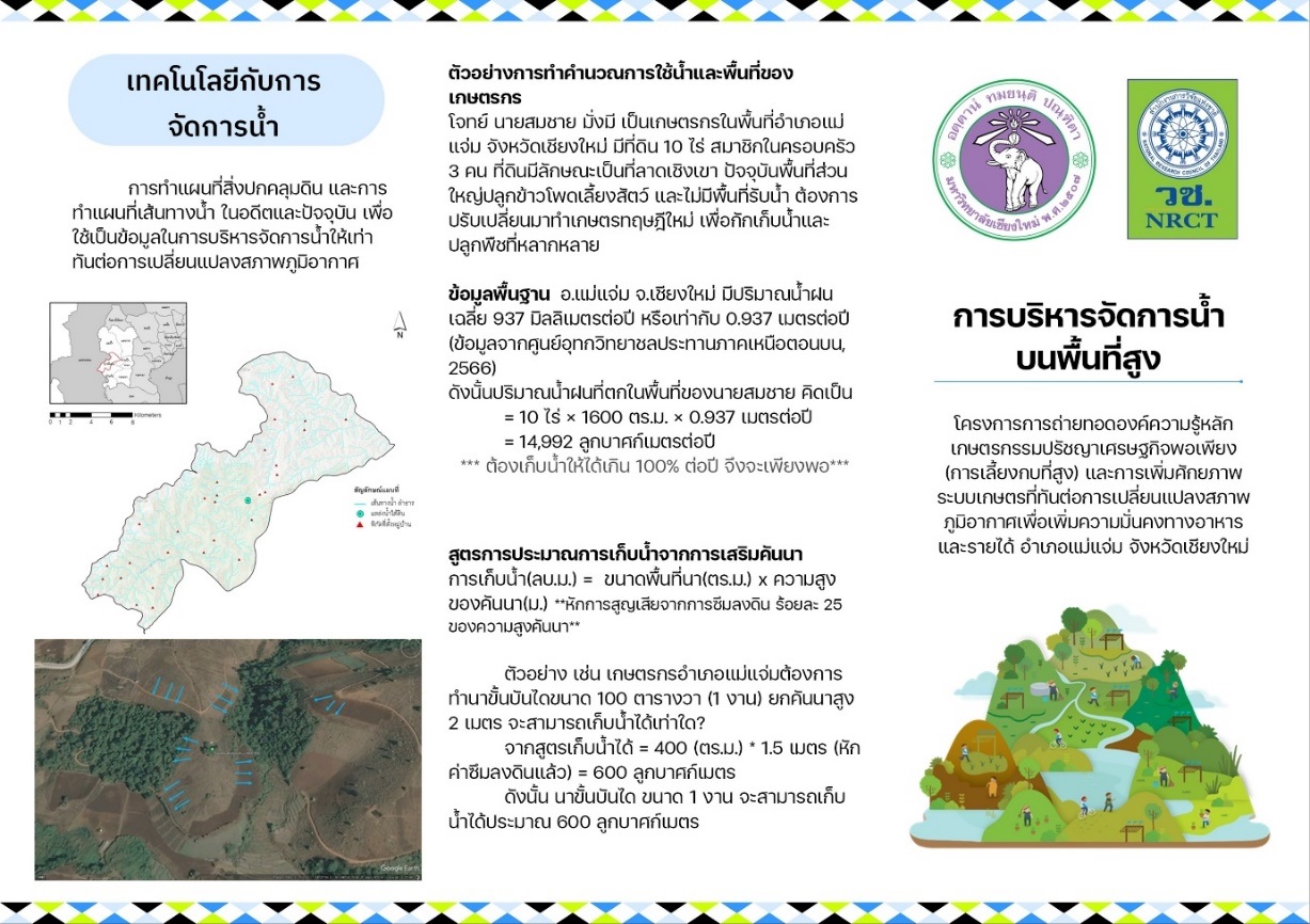 การถ่ายทอดองค์ความรู้เทคโนโลยีระบบเกษตรที่ทันต่อการเปลี่ยนแปลงสภาพภูมิอากาศและระบบเกษตรเศรษฐกิจพอเพียง เพื่อการพัฒนาและส่งเสริมการสร้างบ่อขั้นบันได และการจัดการน้ำอย่างยั่งยืนของเกษตรพื้นที่สูง อำเภอแม่แจ่ม จังหวัดเชียงใหม่